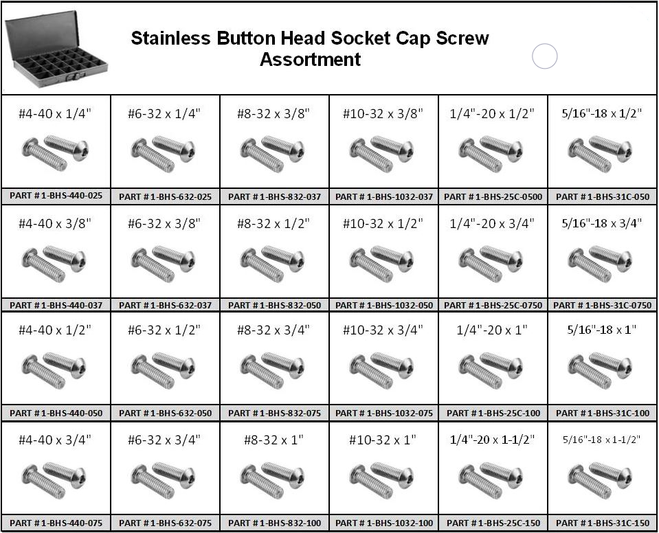 18-8 STAINLESS BUTTON SOCKET HEAD CAP SCREW ASSORTMENT